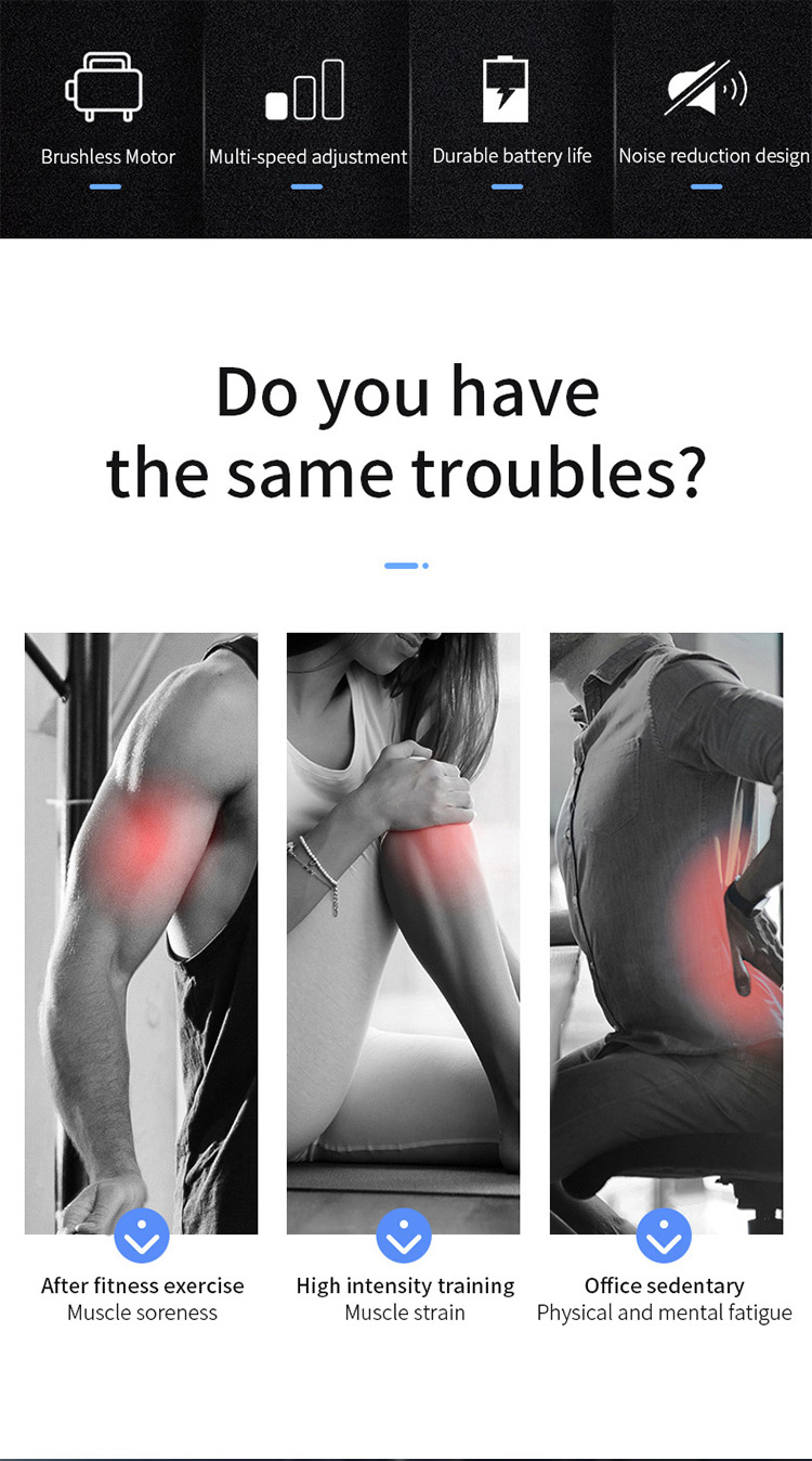 1. Do not touch or press the massage head during operation 2. Do not impact the joint The fascia relaxation gun is generally only suitable for muscle soft tissue. If the impact is directly on the joint, it is almost the same as directly knocking the joint on the stone, which is easy to cause joint damage; 3. Not all parts are suitable for use The thickness of the muscles such as the neck, chest and abdomen, and armpits is relatively thin, and it is not recommended to use the fascia gun at the site of the organs and aorta; 4. It�s not that the longer you use it, the more effective it is. Use body sensing to maintain a soreness of 6-8 points, and use the same position as much as possible within 1 minute; 5. Do not use young infants, minors, pregnant women, pacemakers, fractures or metal contents in the body.