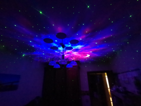 The remote control can control the starry sky projector light, colorful lights, adjust the brightness, turn on/off the lights at will, and change the lighting mode.